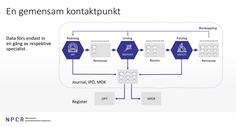 Genom att använda diagnostikmallar i prostatacancerutredningar blir resultaten från MRT, biopsier och patologi mer precisa och kompletta med en automatisk text- och figur-sammanfattning. Detta minskar risken för feltolkningar och gör komplexa data lättare att förstå. När professionen använder mallarna i realtid förbättras den diagnostiska kvaliteten och behovet av manuell registrering i kvalitetsregistret minskar. Samtidigt får radiologerna återkoppling på sina bedömningar. Dokumentationen i journaler och register kan ske samtidigt, vilket eliminerar dubbelregistrering och efterregistrering.